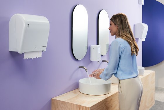 - Flexible Spenderlösungen für Waschräume: Clean&Care Spender für Seife, Desinfektionsmittel und Toilettensitzreiniger