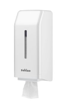 Nowy dozownik pojedynczych arkuszy papieru toaletowego do toalet o małym i średnim natężeniu ruchu. Optymalne bezpieczeństwo w zakresie zaopatrzenia w papier toaletowy dzięki dużej pojemności i możliwości ciągłego uzupełniania; bardzo duże przednie okno umożliwia szybką kontrolę poziomu napełnienia. Dzięki prostemu, higienicznemu pobieraniu pojedynczych arkuszy papieru stanowi on bezpieczny wybór w miejscach publicznych oraz w sektorze opieki zdrowotnej. Płyta montażowa umożliwia szybką instalację względnie łatwą wymianę. Pionowy dozownik zajmuje niewiele miejsca i łatwo wkomponowuje się w każdą kabinę WC.